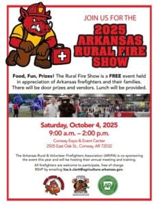 - 2025 Arkansas Rural Fire Show October 4th, 2025 at the State Forestry (Agriculture) FIRE SHOW, Conway Expo Complex, Conway, AR